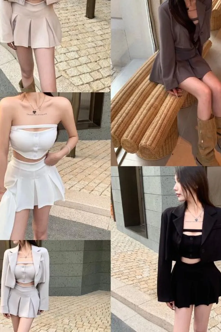 【預購款】胸前簍空百褶裙三件套