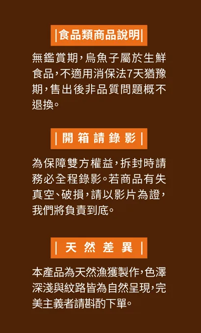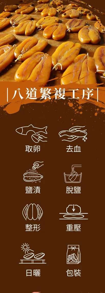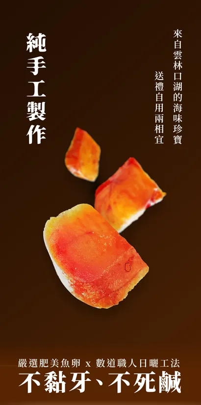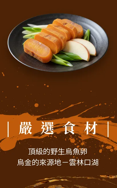 ✰ 來自烏金故鄉 - 雲林口湖,嚴選自頂級野生烏魚卵,經多道嚴謹工序製成。